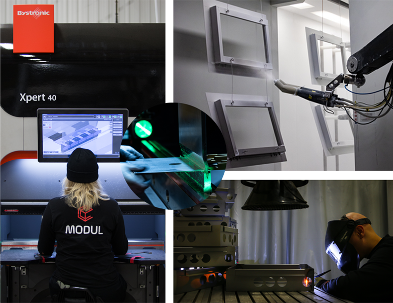 Modul tillverkar konsumentfärdiga detaljer av tunnplåt där fabriken och huvudkontoret ligger i Kalix, Norrbotten. Vi är unika på marknaden vad gäller kombinationen av produktutveckling och produktion av kundanpassade lösningar och produkter av i huvudsak tunnplåt under 3 mm.