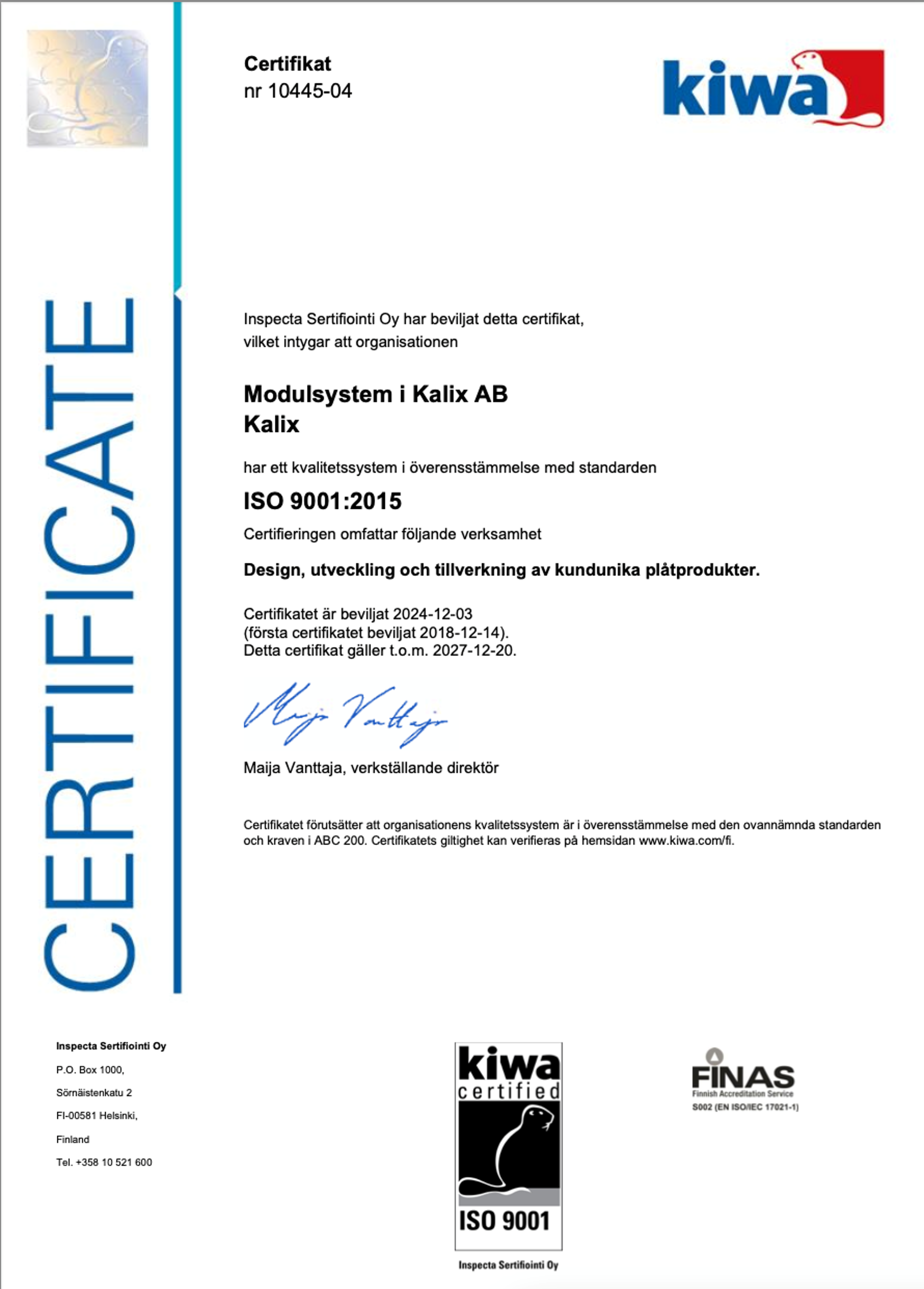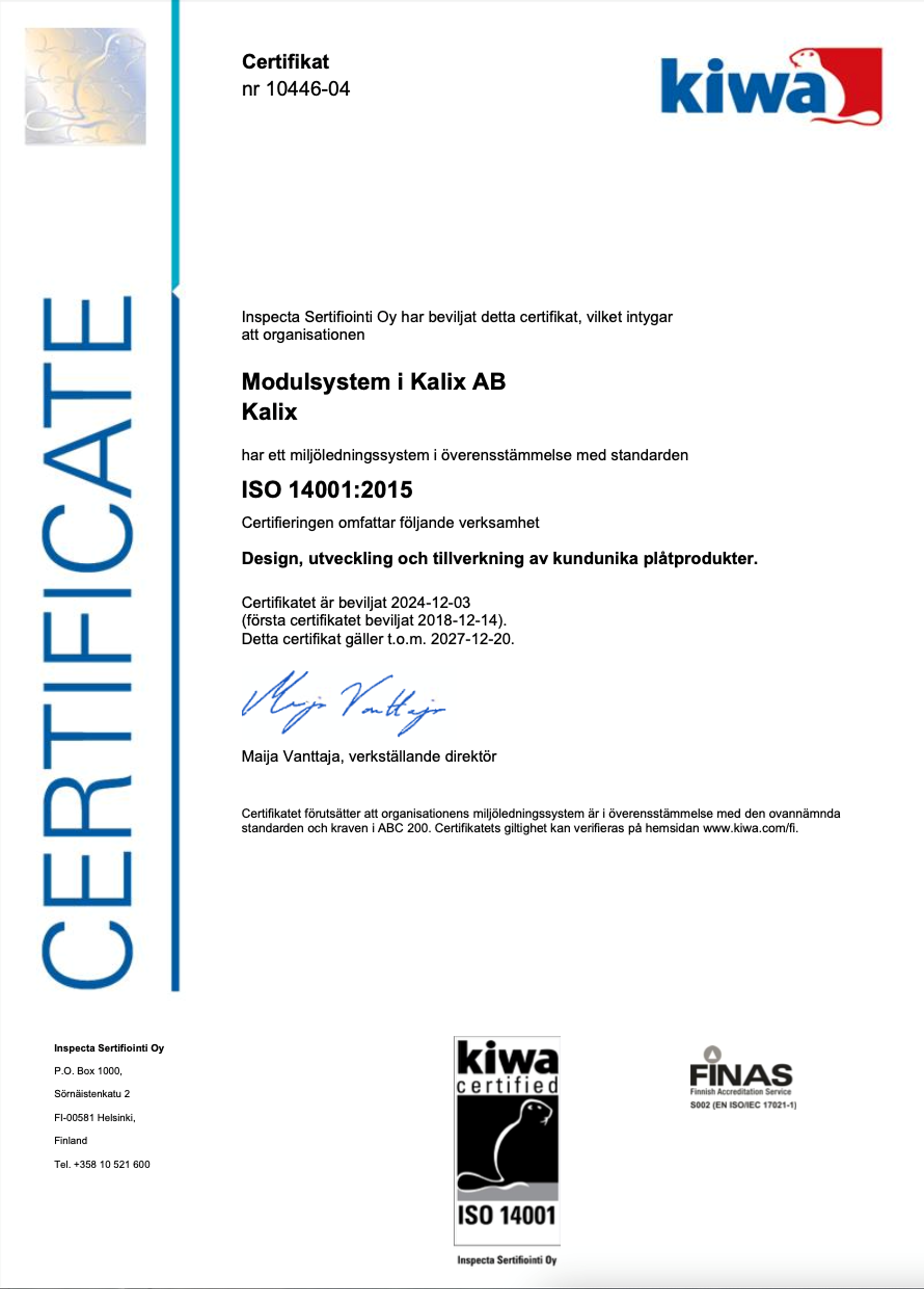 Tryck på bilderna för att öppna upp en PDF version av certifikatet, för nedladdning eller utskrift.