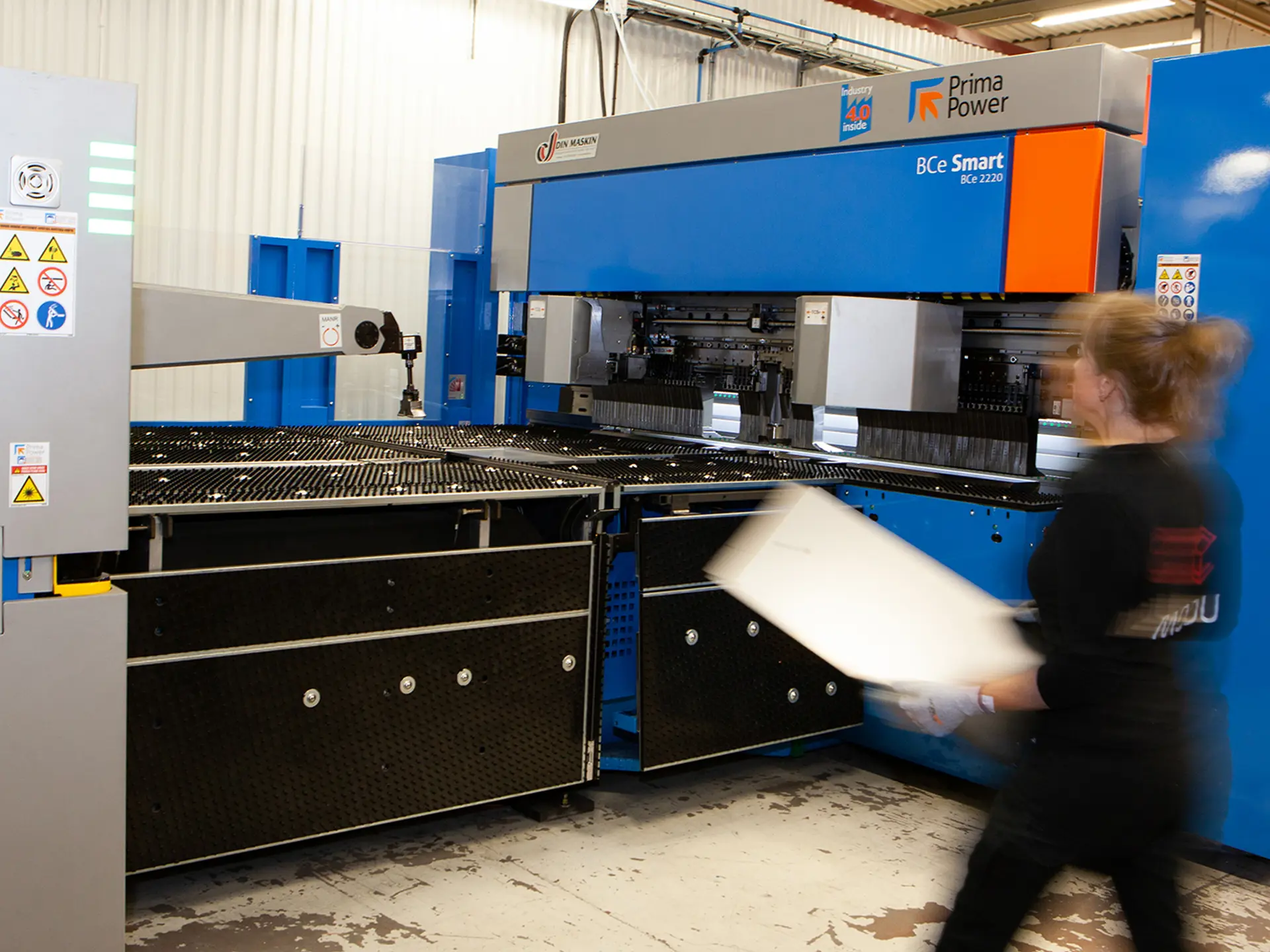 I vår panelbock kan komplicerade bockar utföras på kort tid. Bockningarna kan vara dubbelvikta eller i vinkel och vi utför enstycks-, fåstycks- och serieproduktioner. Vår panelbock är helt automatisk där laddning och plockning av detaljer sker via en integrerad robot, men det finns även möjlighet att köra den semi-automatisk vid behov.